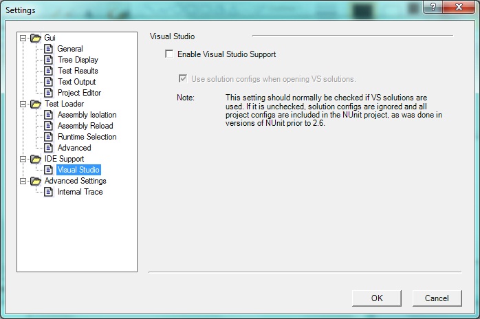 NUnit - SettingsDialog